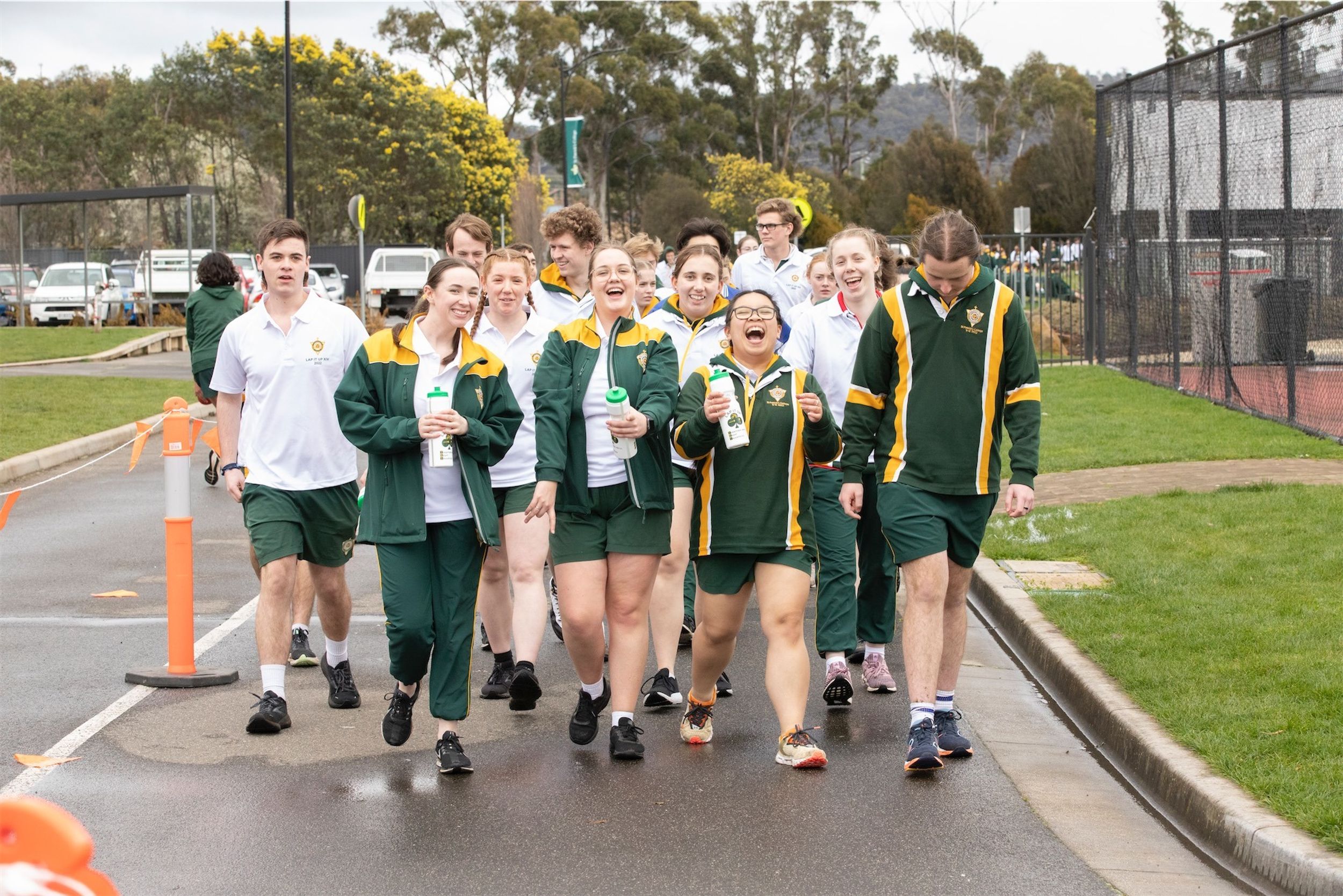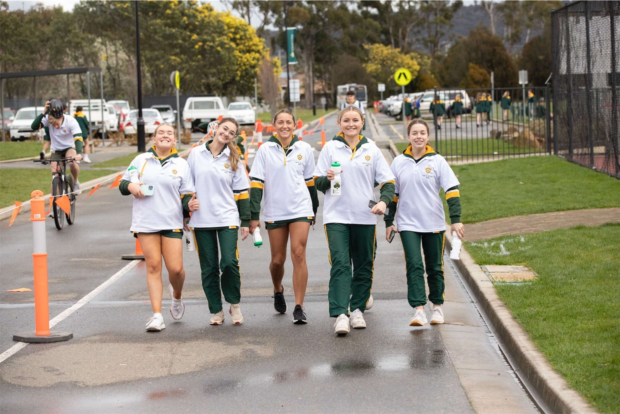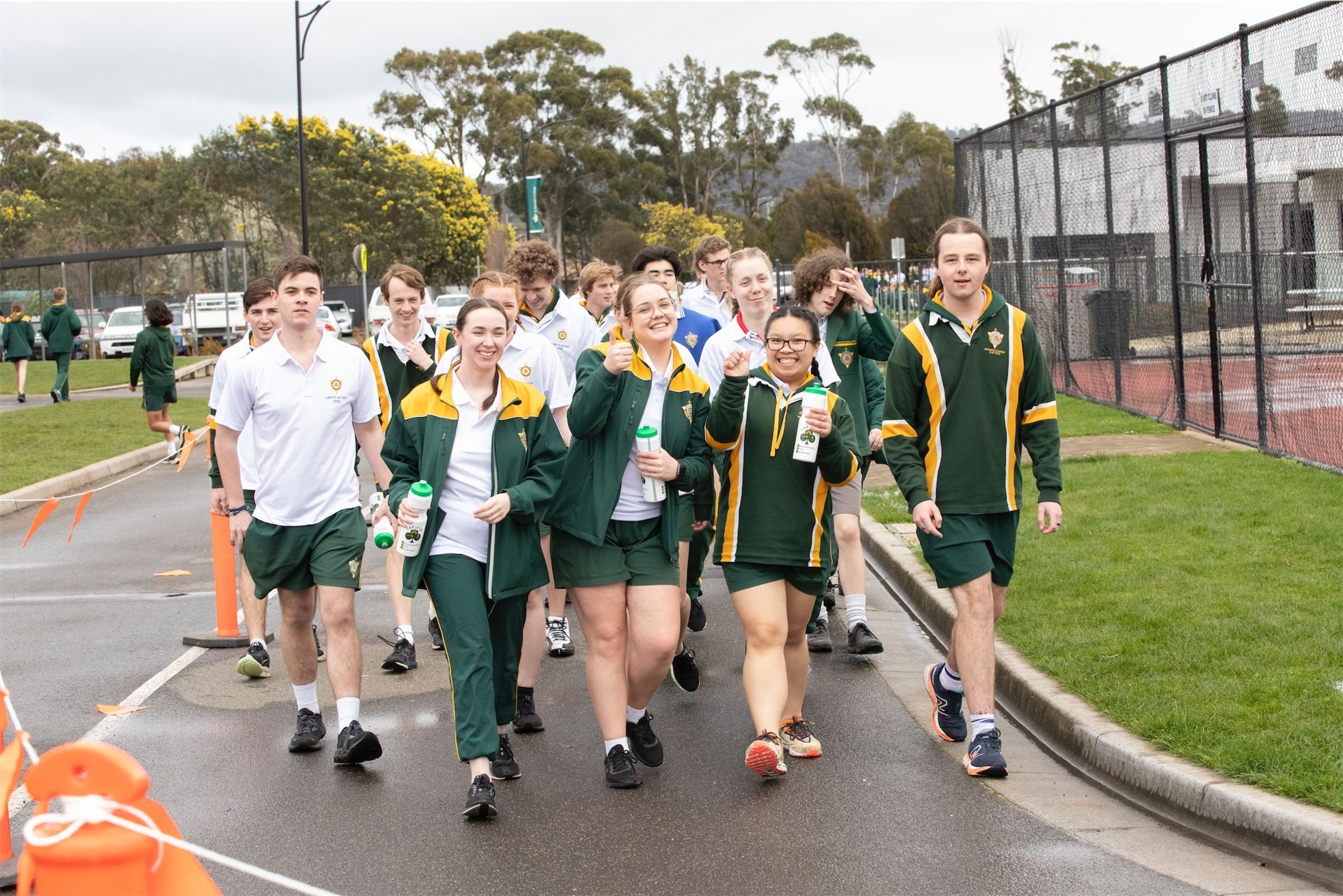 For the past 24 hours, our Year 12 students have been running, cycling and swimming in the annual Lap It Up fundraiser. The weather yesterday was not kind to the participants with rain falling (sometimes quite heavily) from earlier yesterday as well as the early hours of the final day. However, this did not deter the students and staff from participating. Friday morning broke to clear skies and a chill in the air. Although freezing cold, all the students arrived at 8:00am for the all-hour walk to wrap up the 24 hours.