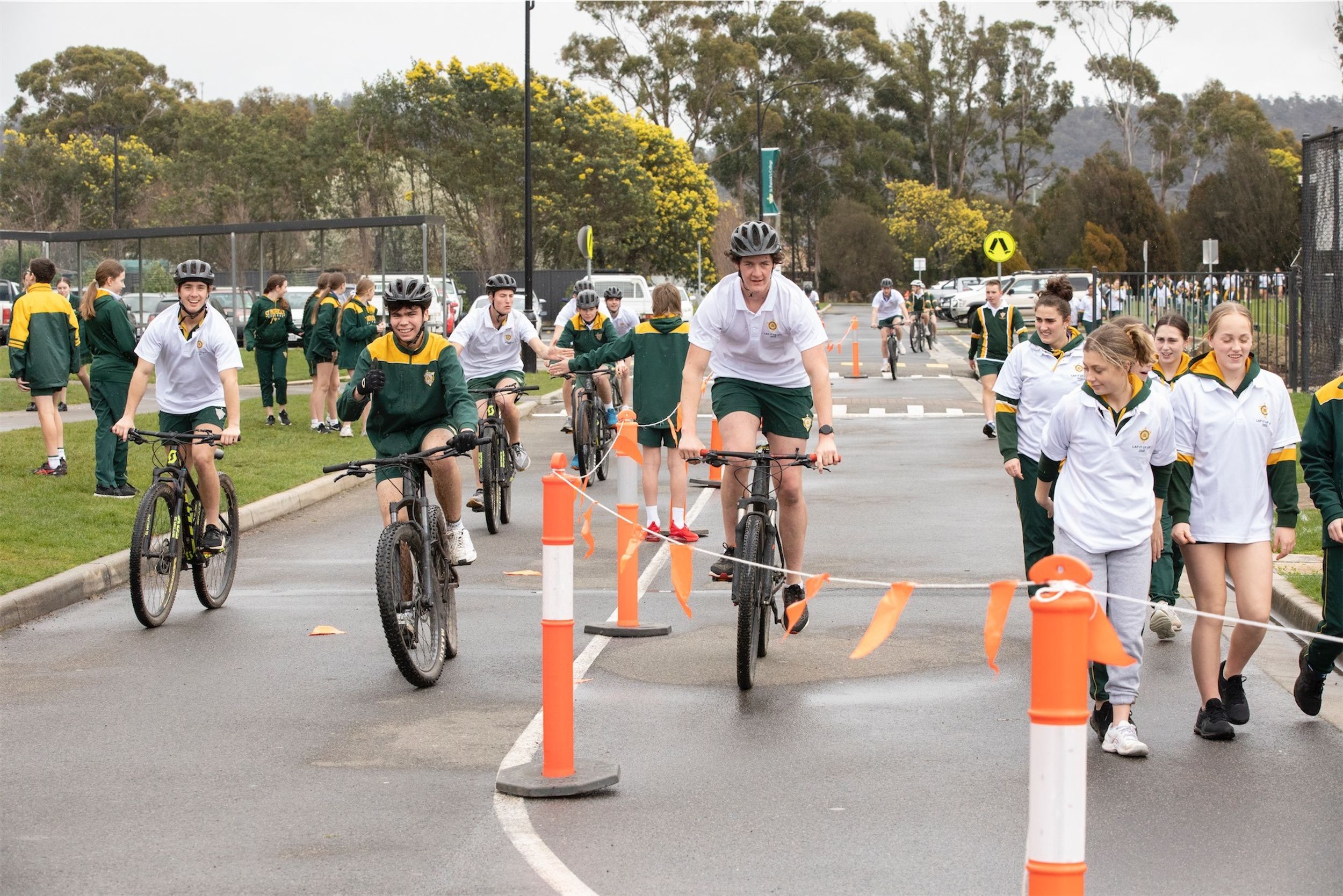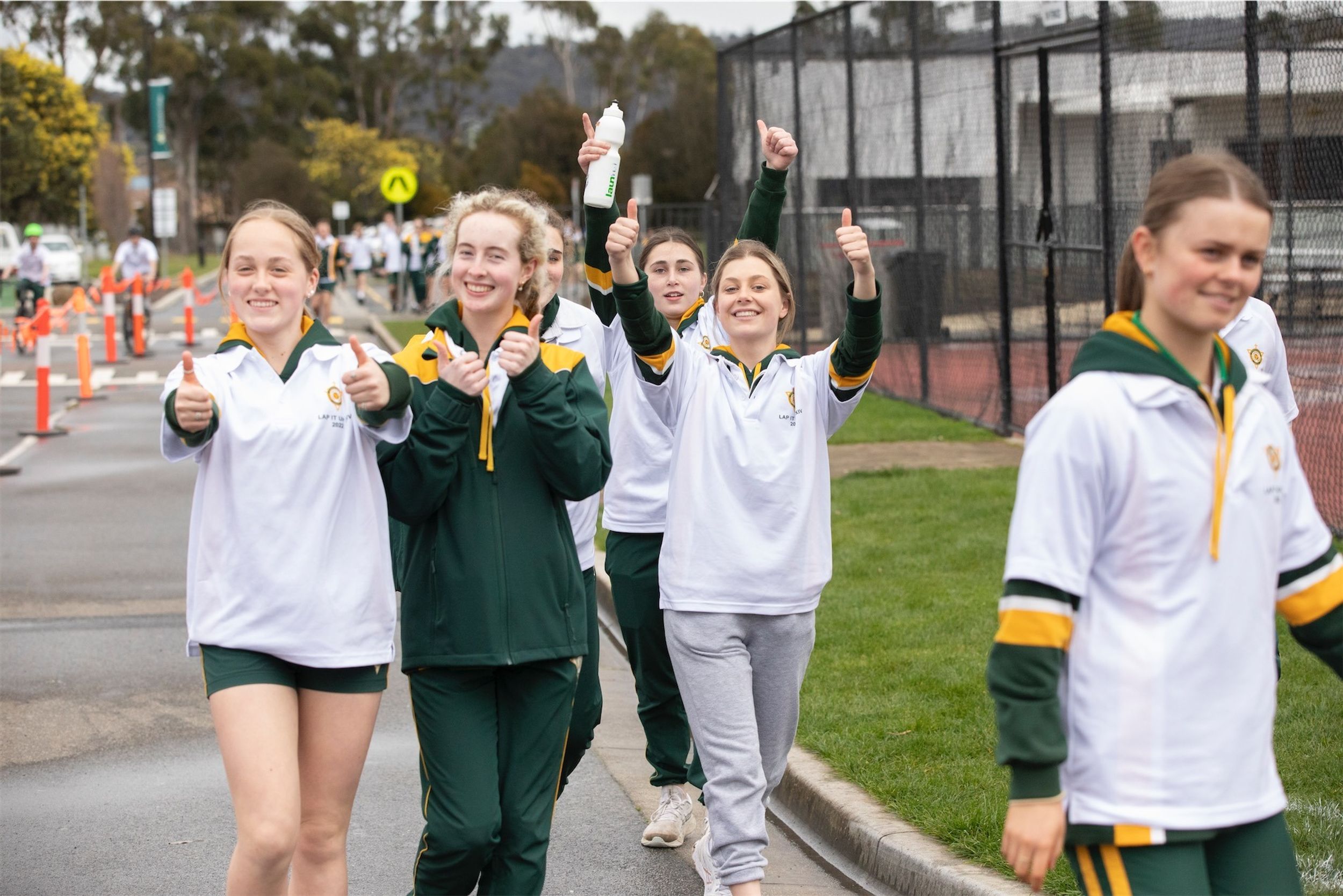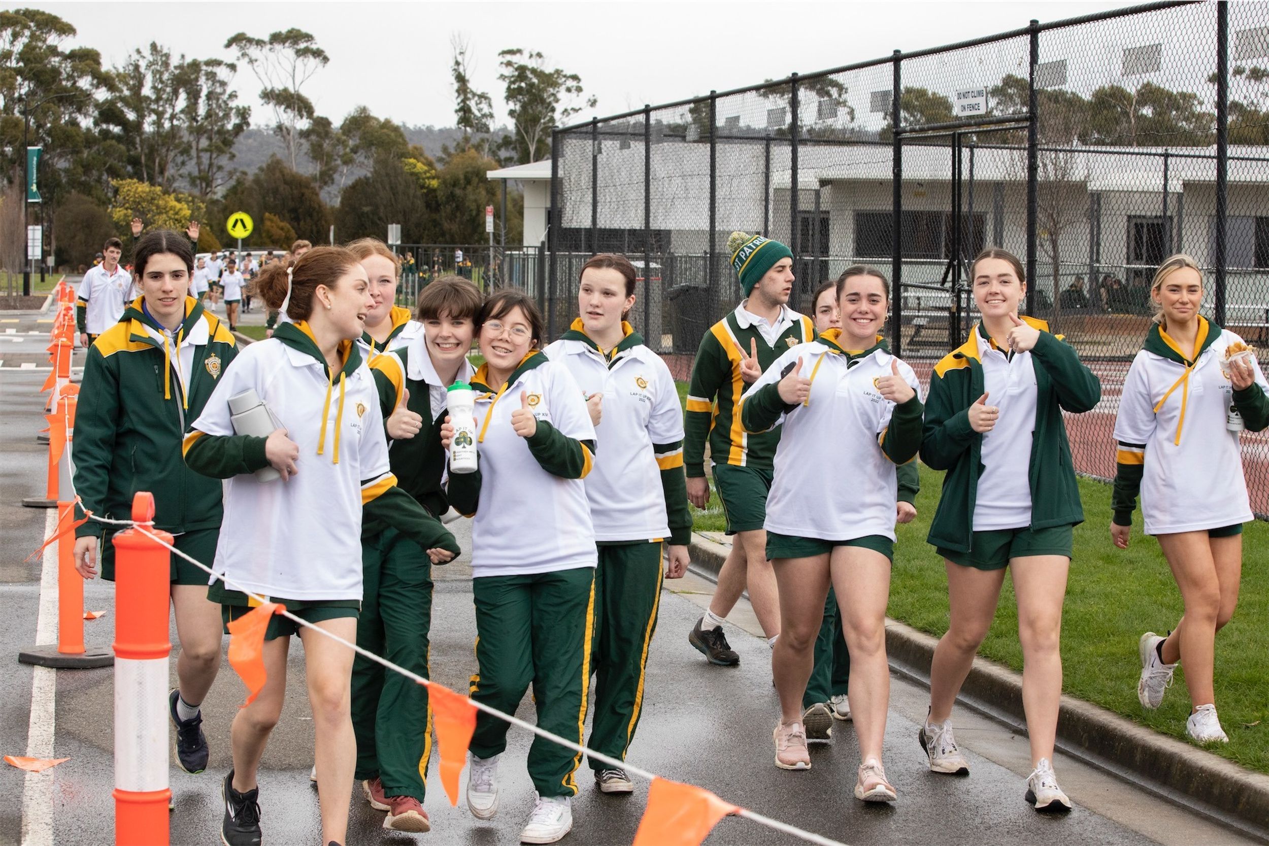 For the past 24 hours, our Year 12 students have been running, cycling and swimming in the annual Lap It Up fundraiser. The weather yesterday was not kind to the participants with rain falling (sometimes quite heavily) from earlier yesterday as well as the early hours of the final day. However, this did not deter the students and staff from participating. Friday morning broke to clear skies and a chill in the air. Although freezing cold, all the students arrived at 8:00am for the all-hour walk to wrap up the 24 hours.